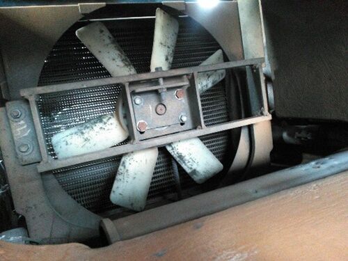 返却されたフォークリフトのファンにひもが絡まっていました。